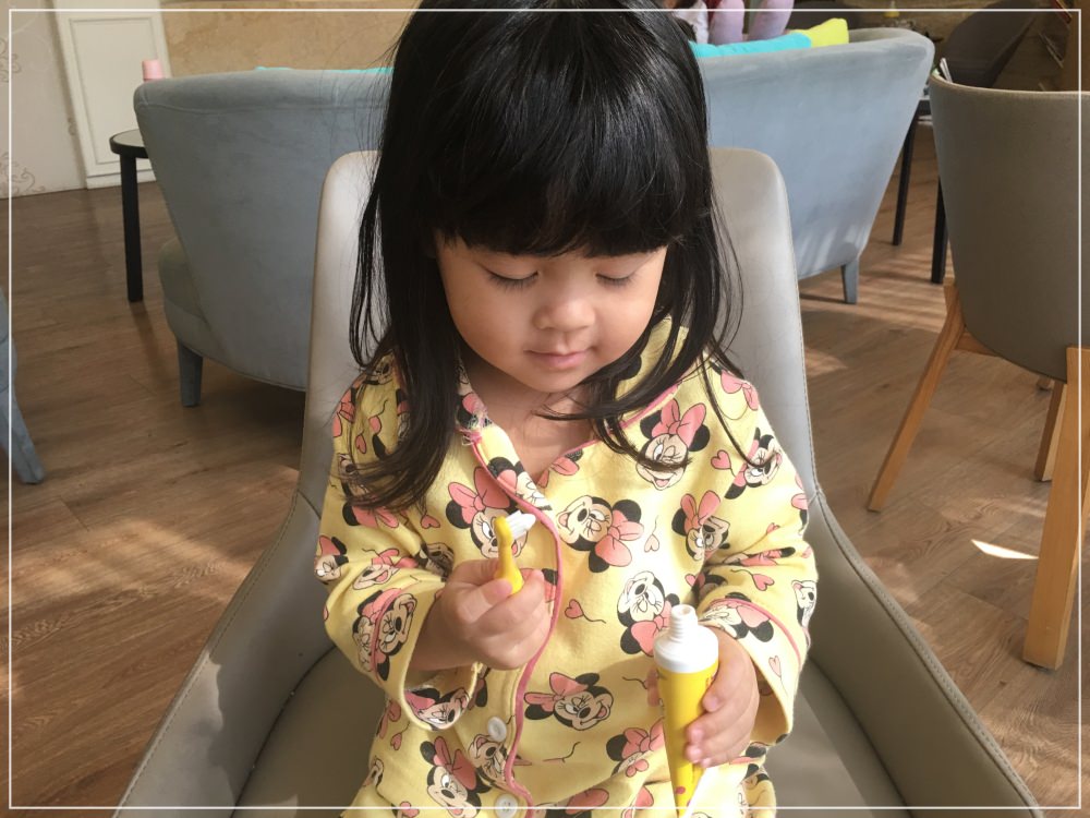 在Luby大一點後,我們開始教她自己刷牙,爸媽隨後檢查