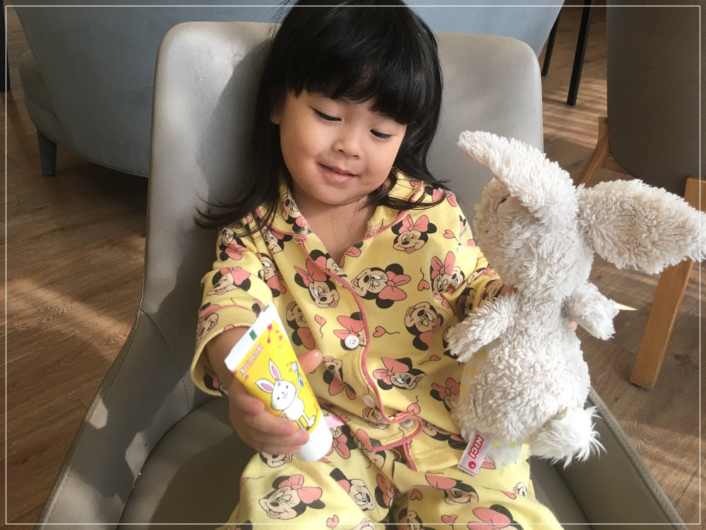 首先他有可愛兔寶寶的圖案,還有草莓口味,完全切中小孩的心,