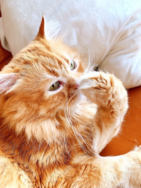 塗好之後貓星人大概會感覺手上有異物開始舔啊舔舔舔的