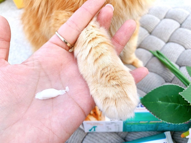 像這樣直接塗抹在寶貝的貓掌上就可以了